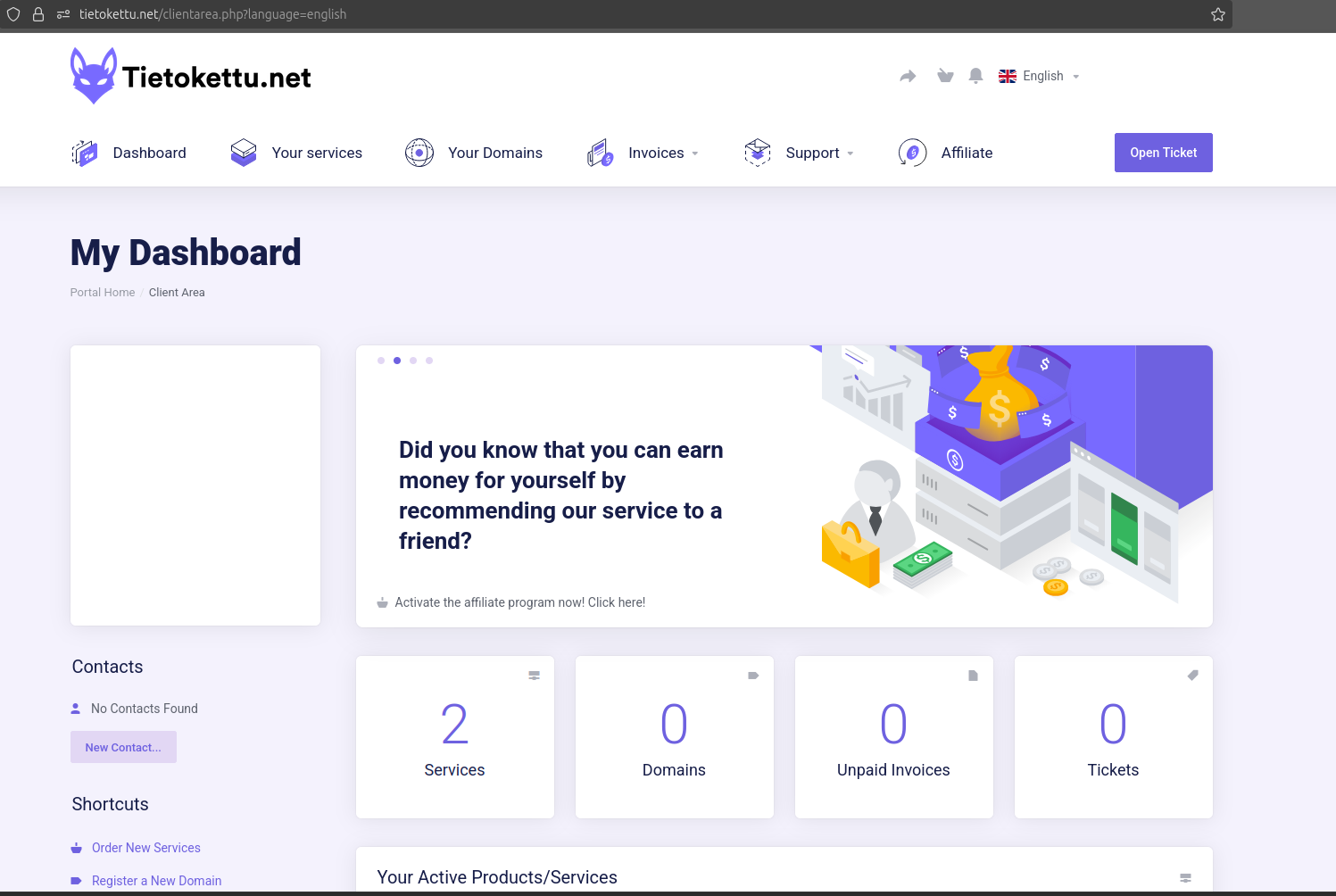 You can find the VNC by logging into your Tietokettu.net account and navigating to My Account → Active Services → Virtual Servers → Management → Settings → VNC. In this view, you can also change your password.