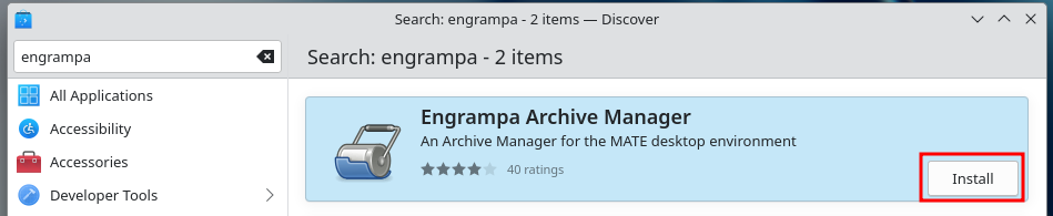 Seuraavaksi asennamme Engrampa Archive Manager -työkalun helpomman purkamisen vuoksi. Voit asentaa sen avaamalla software center.
