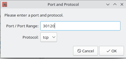 Lisää portteja 30120 tcp ja 40120 tcp