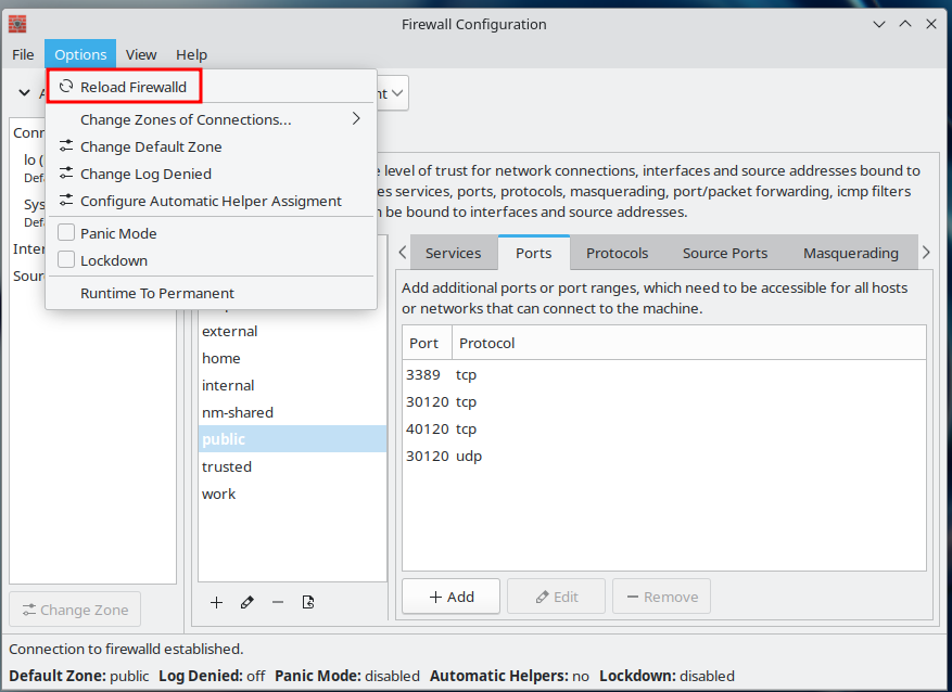 sudo firewall-cmd --reload