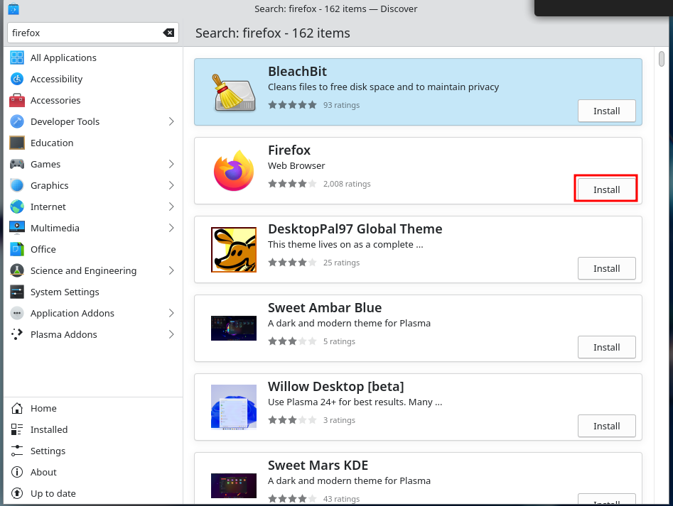 Ja paina Install nappia Firefoxin kohdalla