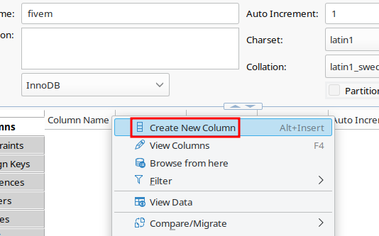 Paina oikealla hiiren napilla tyhjää aluetta ja valitse Create New Column