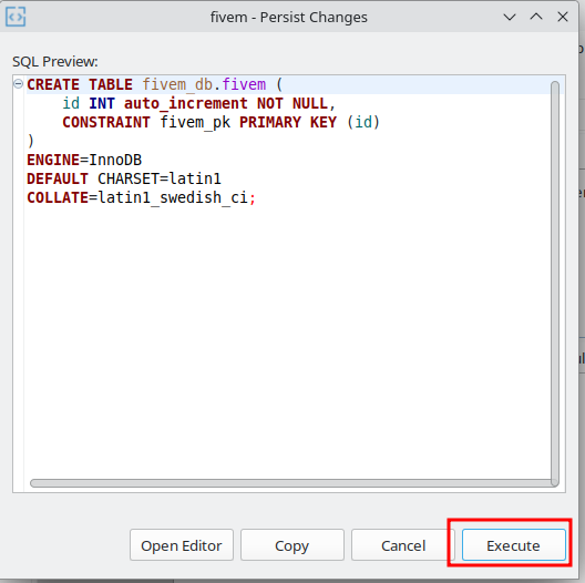 CREATE DATABASE fivem_db;