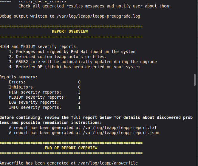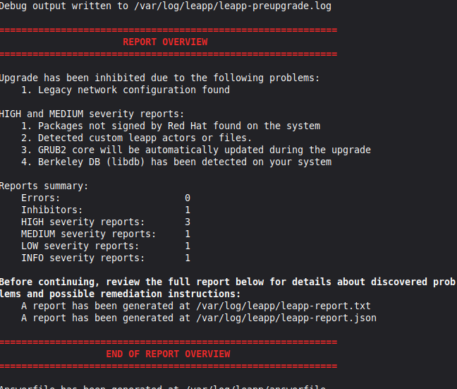 sudo leapp preupgrade