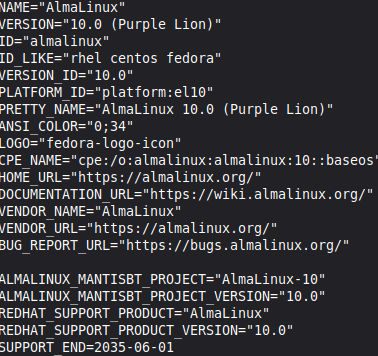 Jos tuloksena näkyy almalinux 10, niin päivitys Almalinux (9 -> 10) on onnistunut