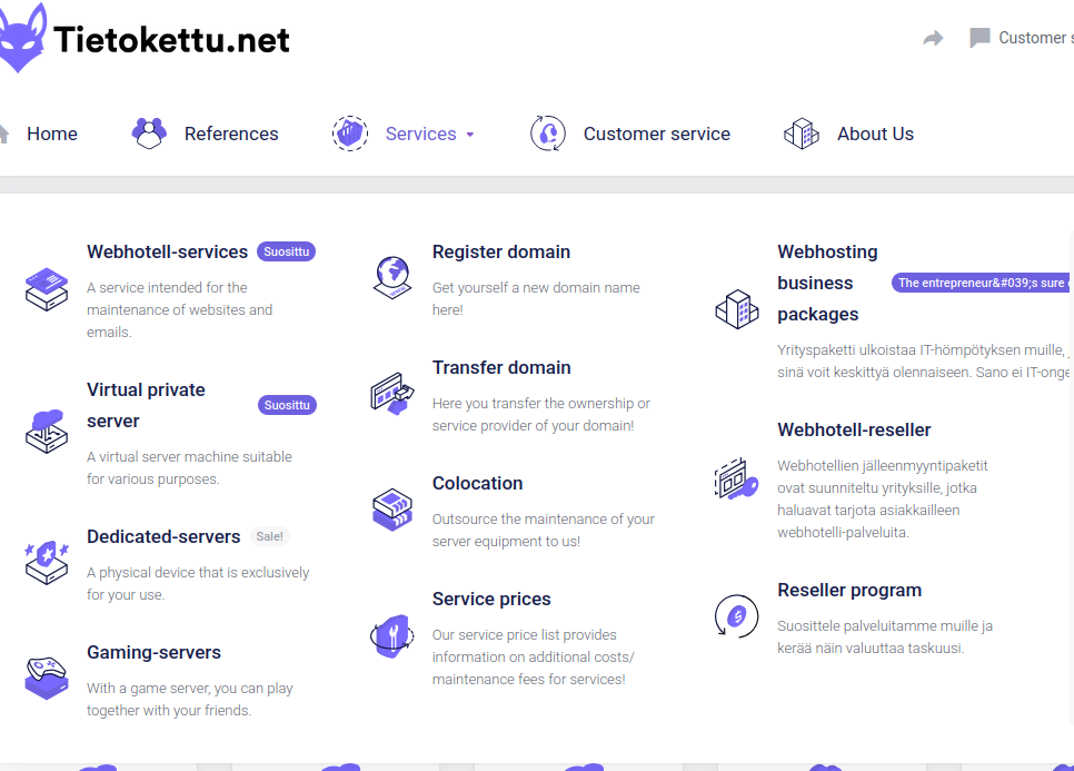 By clicking "Our Services," a dropdown menu will open, where you can select VPS servers.