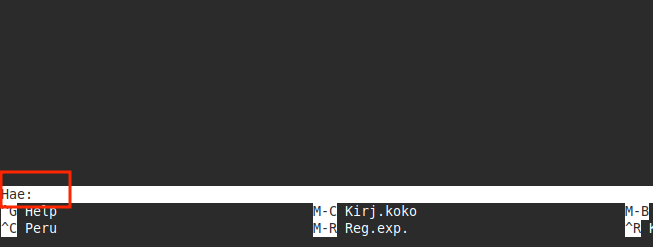 Kuten voit etsiä sanoja Nanossa vasemmalta alhaalta painamalla Ctrl + W, kirjoita etsittävä sana (esim. auto) ja paina Enter.