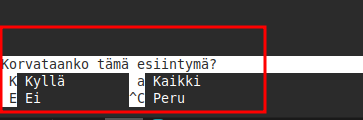 4.Tässä kohtaa pystyt valita haluatko korvata kaikki A vai vain yhden K.