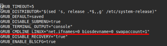 Lisää kuvssa näkyvän GRUB_CMDLINE_LINUX tai sen tyyliseen kohtaan swapaccount=1 saman tapaisesti kuin kuvassa