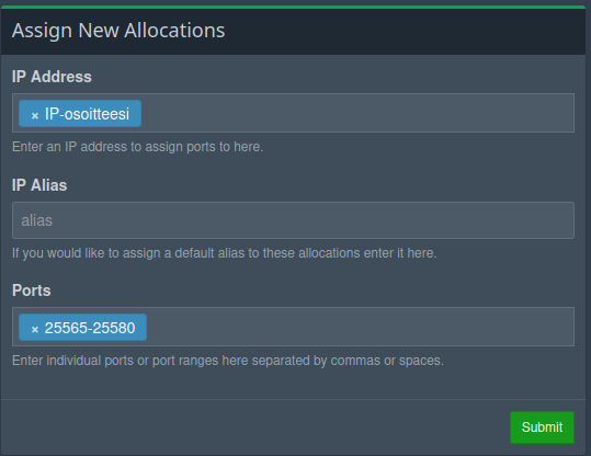 Laita siellä oikealla olevaan kohtaan palvelimesi ip ja kuvassa näkyvät portit