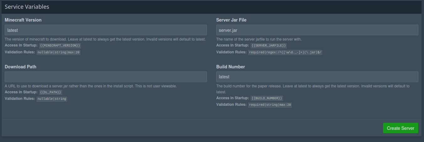 Sitten voit valita version ja sitten painaa Create Server nappia