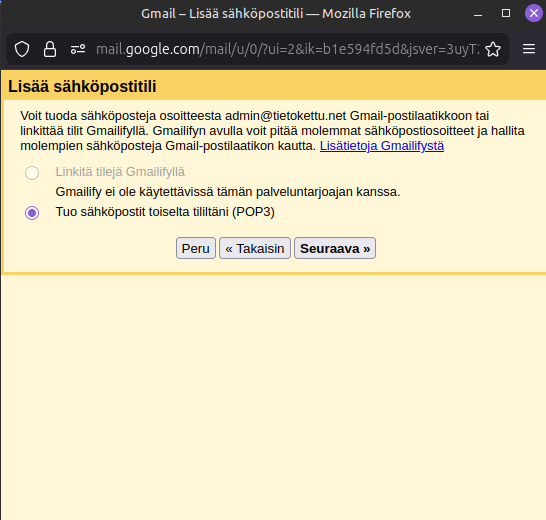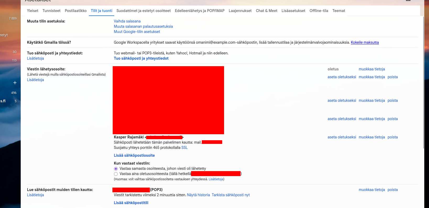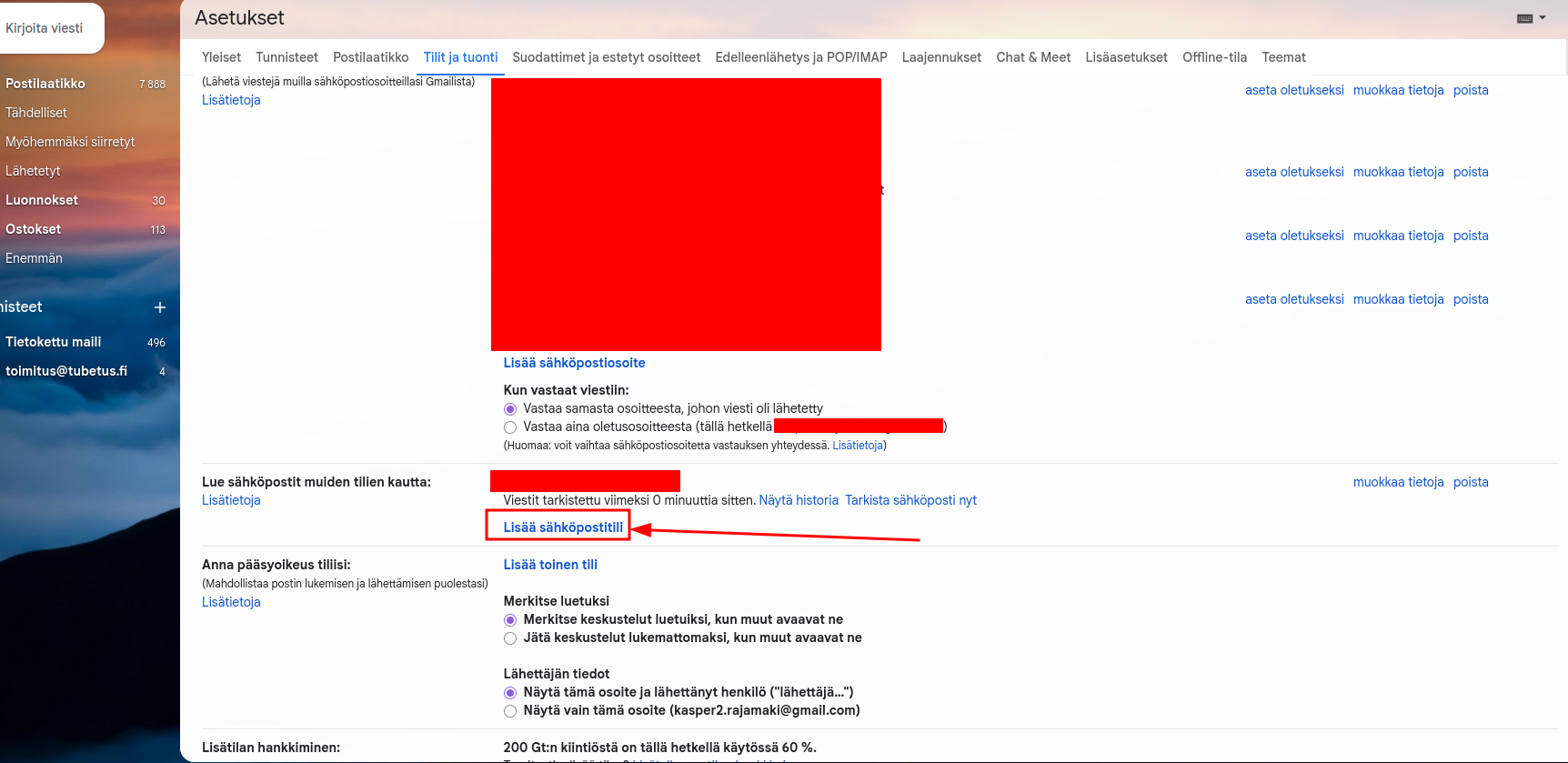 5. Kohdasta "Lue sähköpostit muiden tilien kautta" paina "Lisää sähköpostitili".
