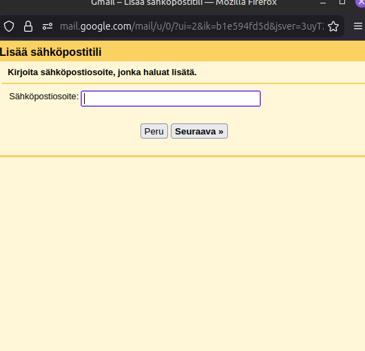 6. Kirjoita sähköpostisi ja paina "Seuraava"