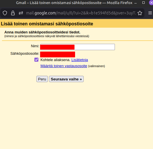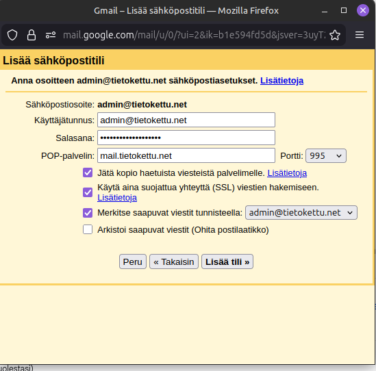 11. Seuraavaksi syötä tiedot oikein. Tässä esimerkki tiedot: