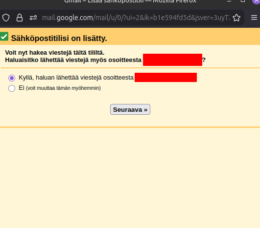 9. Seuraavaksi valitse "kyllä" ja klikkaa "Seuraava"
