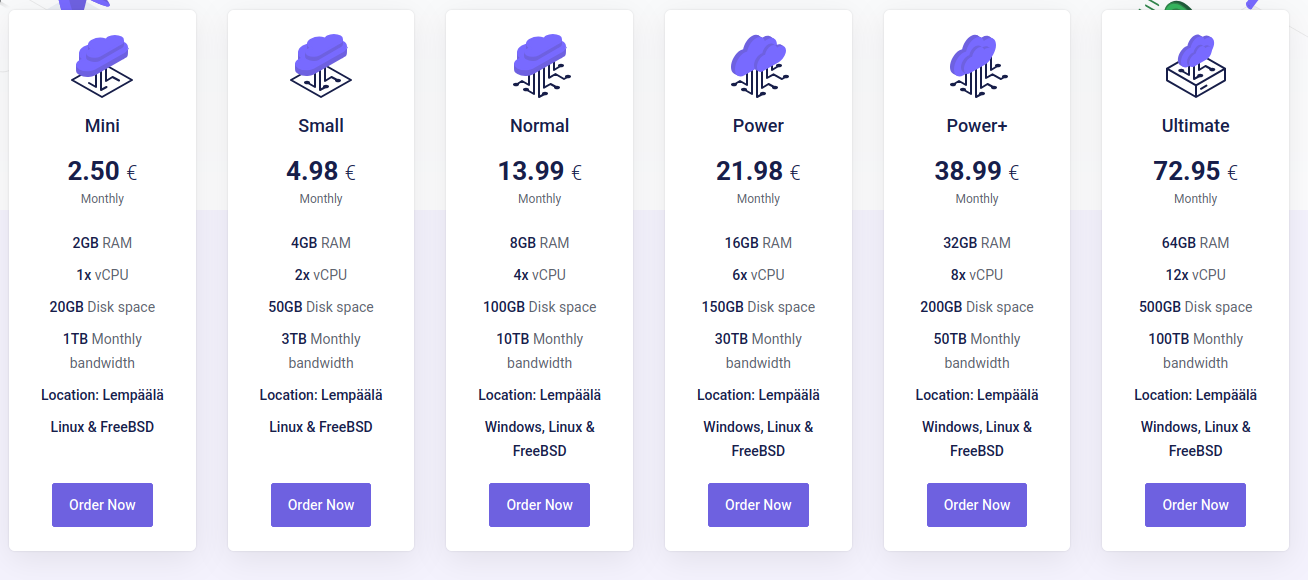 -Mini Package (€2.50): A very affordable option, suitable for a mail server or a lightweight website. Not recommended for heavier workloads.